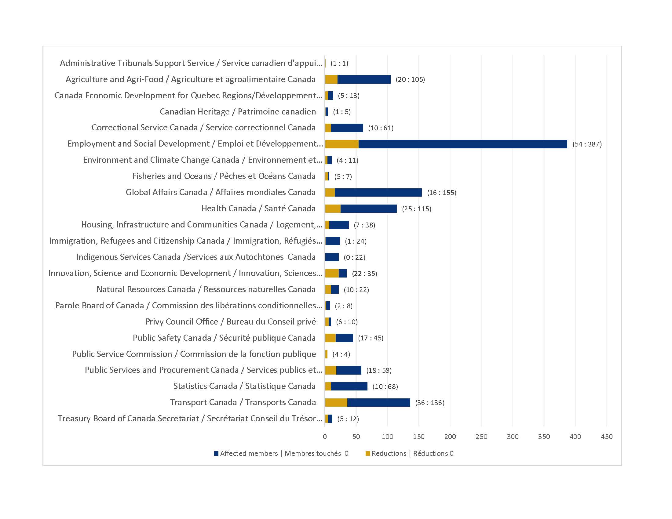ACFO-ACAF represents workers in 70 departments across the federal public service. Over the past few weeks and months, we’ve been collecting data from those departments to establish how many of our members have been issued affected notices. As we’ve now collected data from many of those departments, we’re able to share that information with the CT Community.